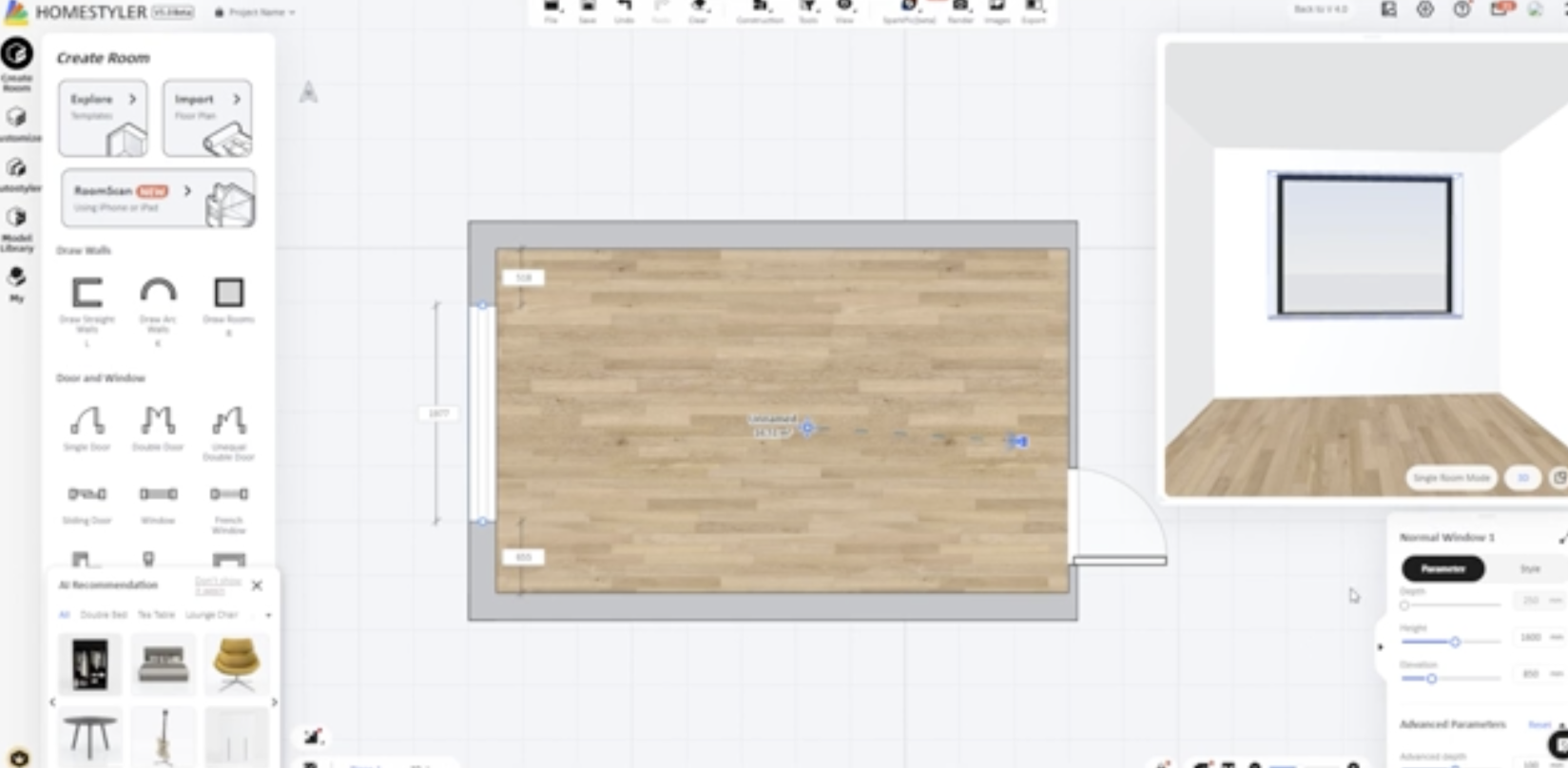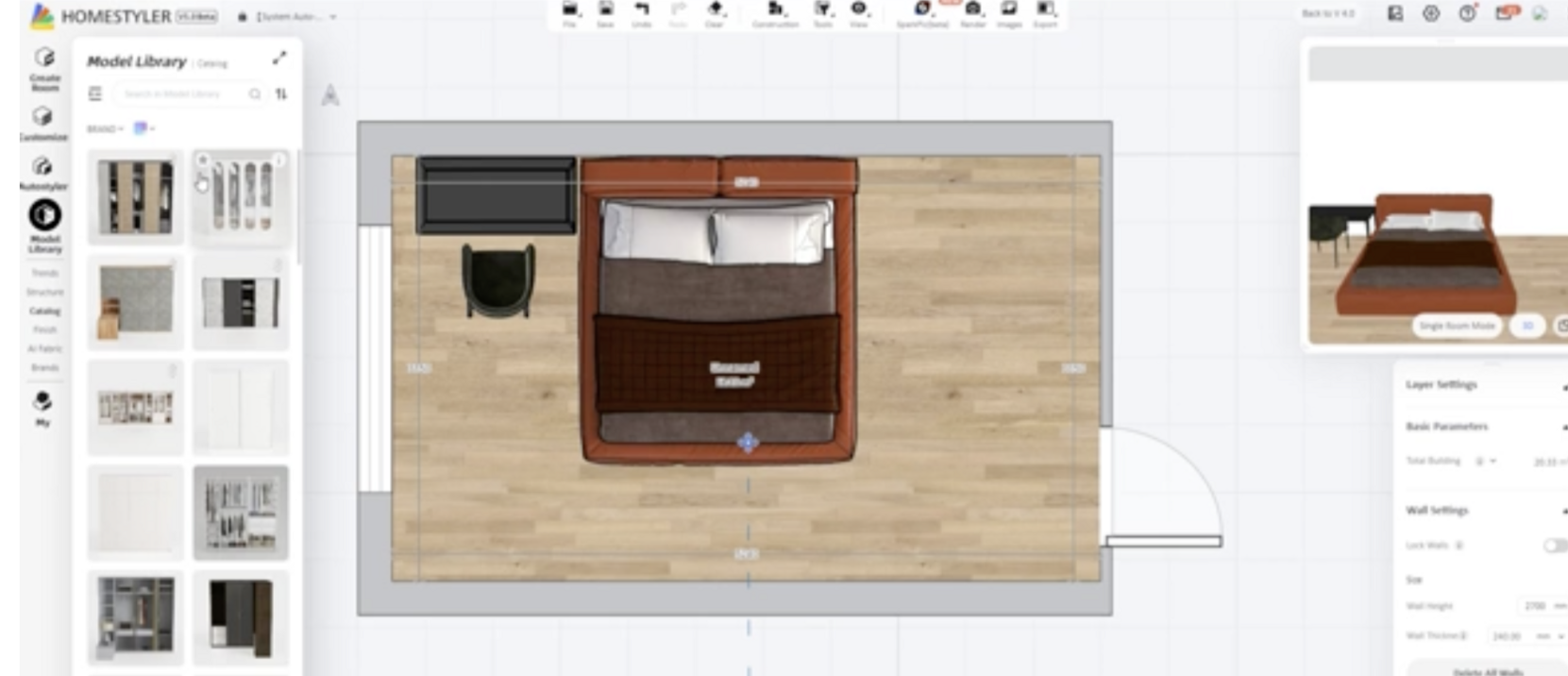 Пошаговый план для создания визуализации спальни в Homestyler с полного нуля: